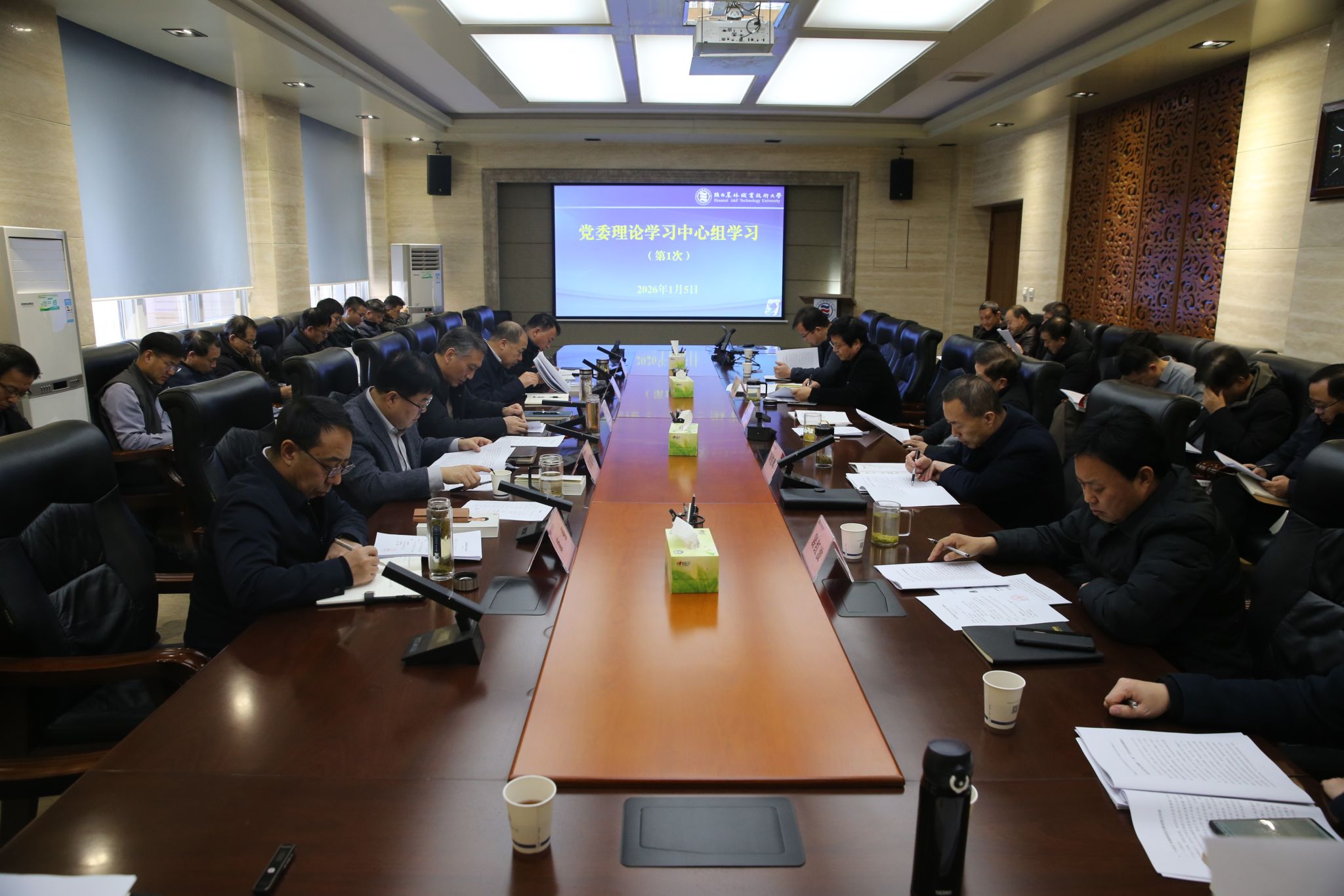 会议集体学习了国家主席习近平发表的二〇二六年新年贺词、习近平总书记对做好“三农”工作作出的重要指示、习近平总书记历次来陕考察重要讲话重要指示精神、《习近平谈治国理政》第五卷、省委经济工作会议精神。与会人员结合学校实际,围绕学习内容进行了发言。
